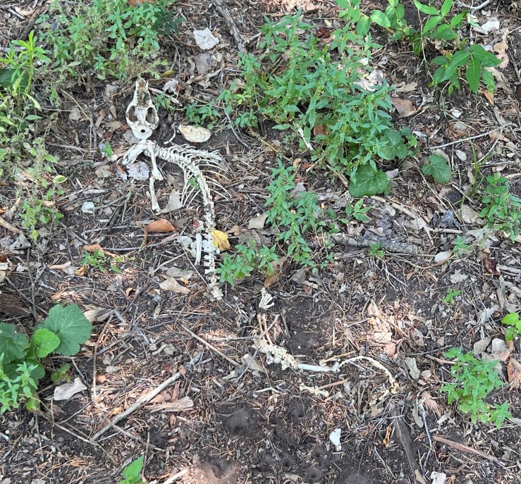 Another thing I saw that I could use some identification help with is this mammal skeleton. Could it be a fox or a coyote? It has large canine teeth. Or am I missing something obvious?