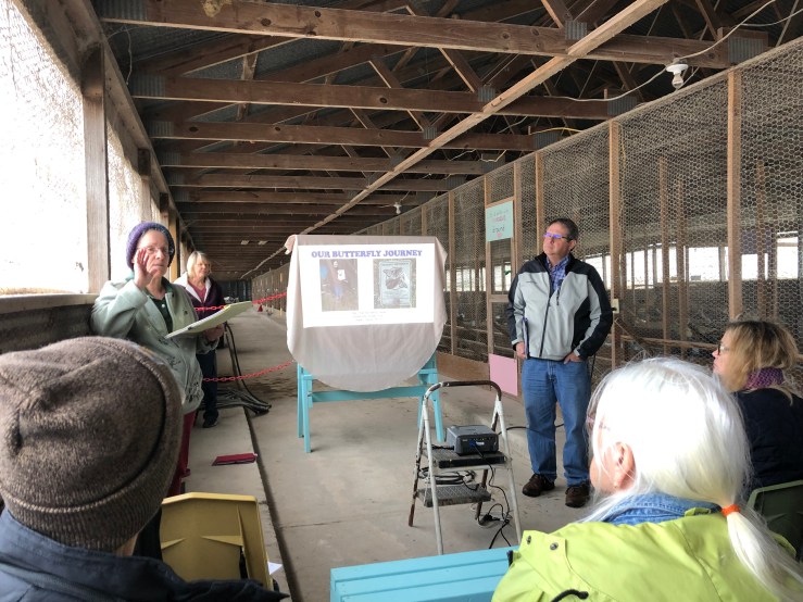 Last time, we told you about the Wildscape program at Bird and Bee Farm. They also sponsor educational events, and our members attended a training on raising monarchs for release there on Sunday, March 3. It was presented by Karen and Steve Thier of Plano. We were also joined by monarch expert Bob Mione.