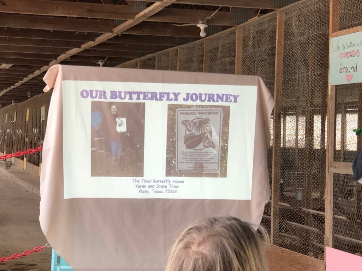 The process is fascinating. They plant a lot of milkweed and other attractors to get butterflies to come lay eggs, then gather up the eggs and hatch them in special butterfly cages. Once the caterpillars hatch, they feed them lots and lots and lots of the correct kinds of plants for their species, then wait while the future butterflies pupate. Once they emerge, they take them to places where they can find their friends and keep the cycle going. By doing this, they greatly increase the number of eggs that actually grow to adulthood, compared to out in the wild.