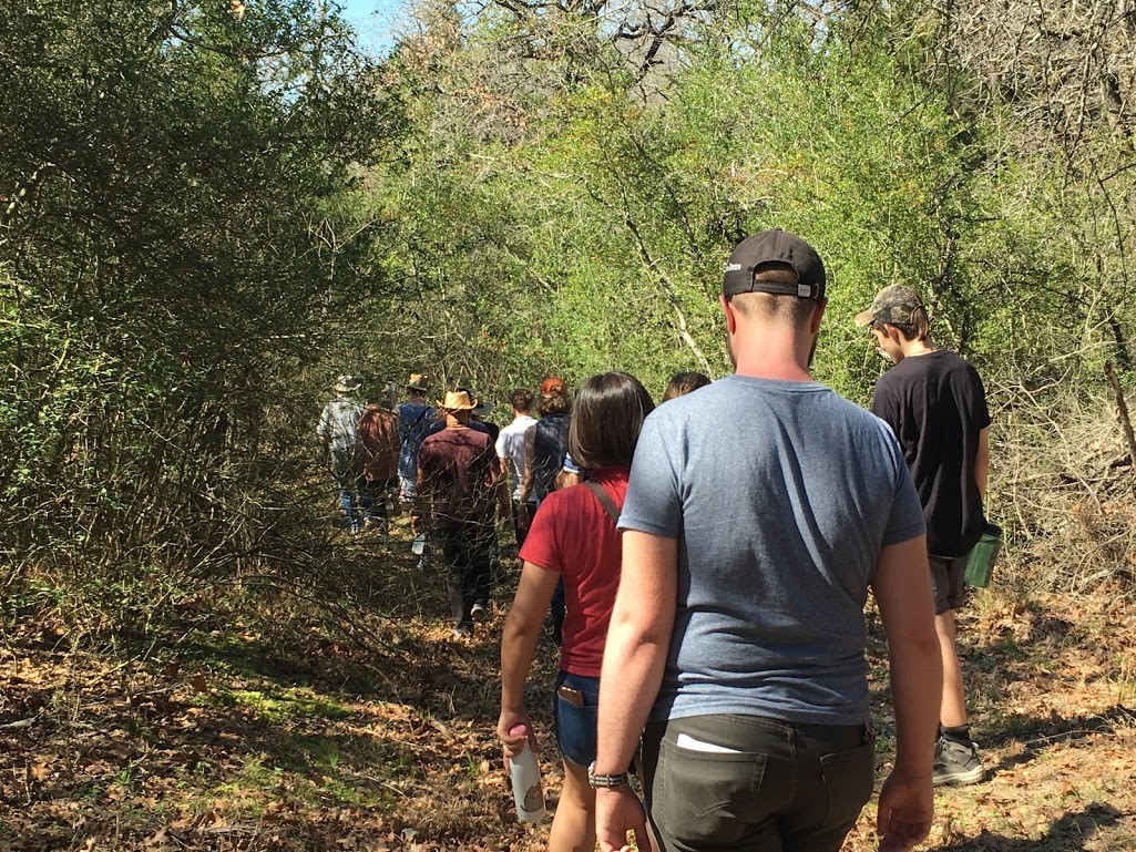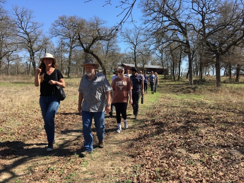 On Saturday, March 9, 2019, thirteen students; their teacher, Dr. Nichole Wiedemann, from the University of Texas School of Architecture; and Steven Gonzales, Director of El Camino Real de los Tejas National Historic Trail Association (ELCAT), arrived at Cedar Hill Ranch in Gause to hike a small part of El Camino de los Tejas National Historic Trail.