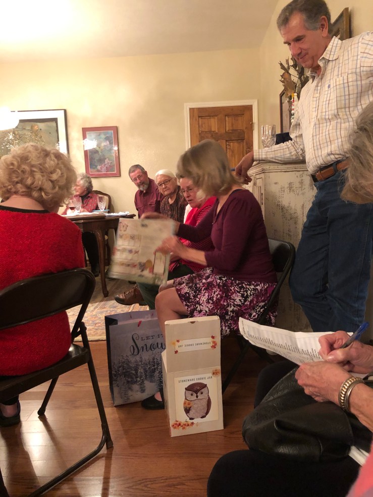 As in past years, the Dworaczyk family hosted our party in their beautiful home. Sandra has so many beautiful decorations that it’s like a winter wonderland in there! She even has enough Christmas dishes for all attendees to eat off a beautiful plate with beautiful flatware, too.