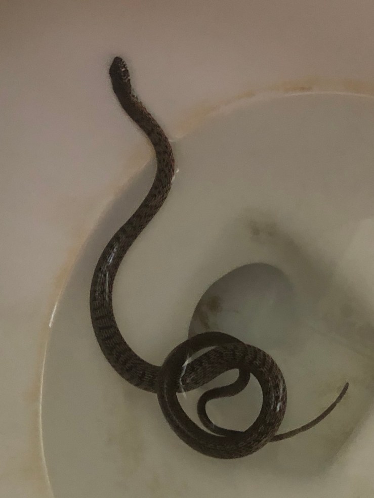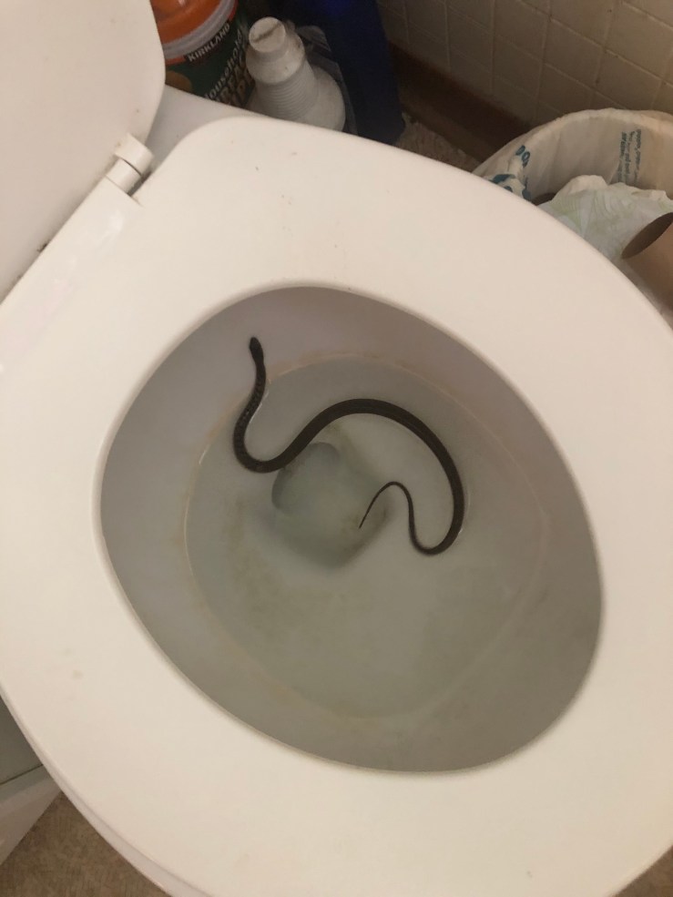 The snake was taking refuge in a nice, damp place. That can scare the pee out of you!