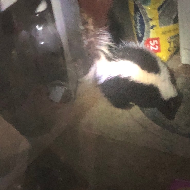 When Pamela tried to block the door, the patient skunk slowly but surely worked out how to remove the barriers, so he or she could search for snacks. Cat food is really delicious, apparently.