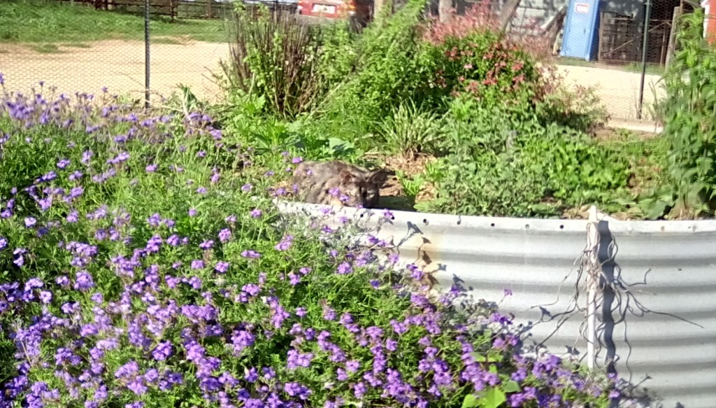 The garden is bursting with wildflowers, natives, bushes, trees, and vines. Milkweed will be planted soon. Many creatures call the garden home.