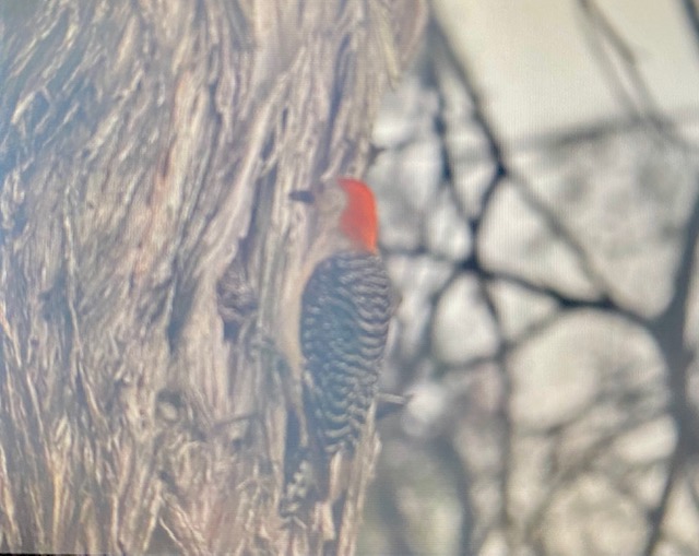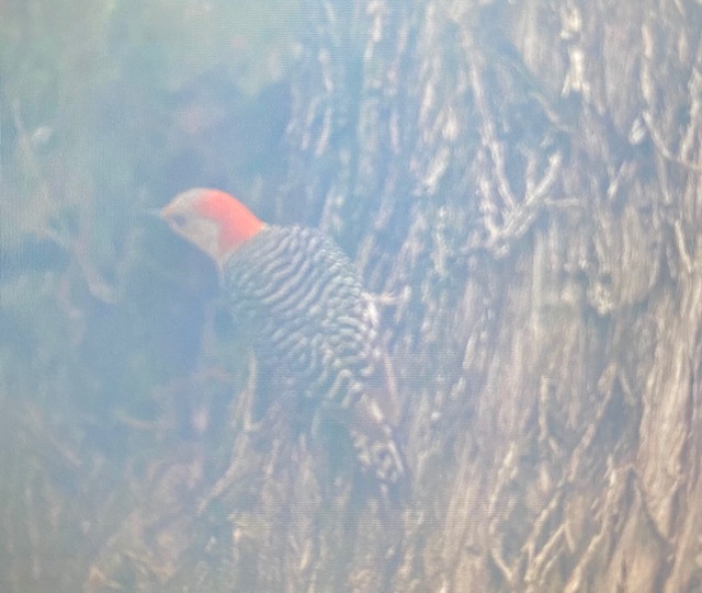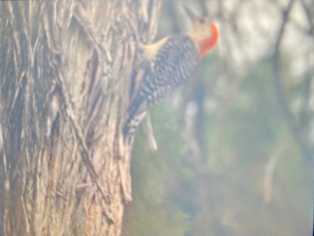 I told the people at last week’s chapter meeting about Annie the red-bellied woodpecker, who has been hanging around the food pantry in the church building in Hutto where I do a lot of my volunteer work.