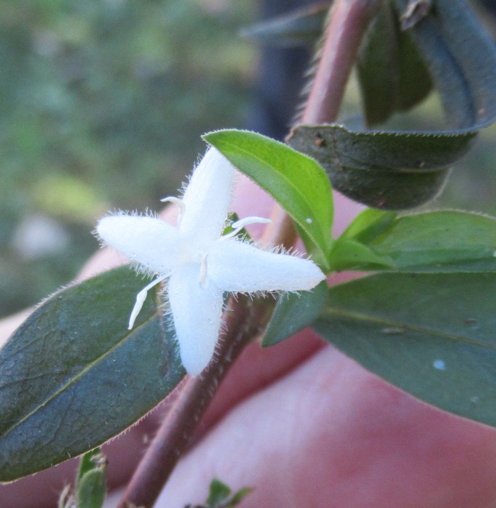 The closely trimmed city block has a border hedge of holly festooned with Carolina snailseed (Cocculus carolinus ). The lawn contains the usual scattering of straggler daisy (Calyptocarpus vialis), turkey tangle frogfruit (Phyla nodiflora), and yard asters (Symphyotrichum divaricatum). A couple of large lilac chaste trees (Vitex agnus-castus) and a bur oak (Quercus macrocarpa) are the landscape trees.