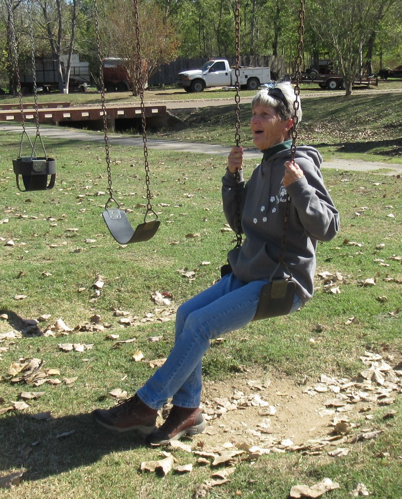 While Eric Neubauer captured another image of a grasshopper, Donna Lewis tried out the swing set.