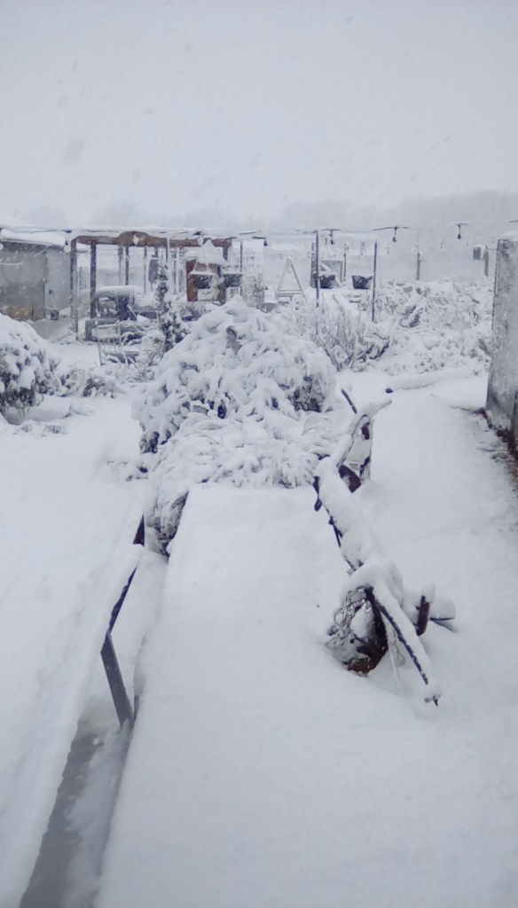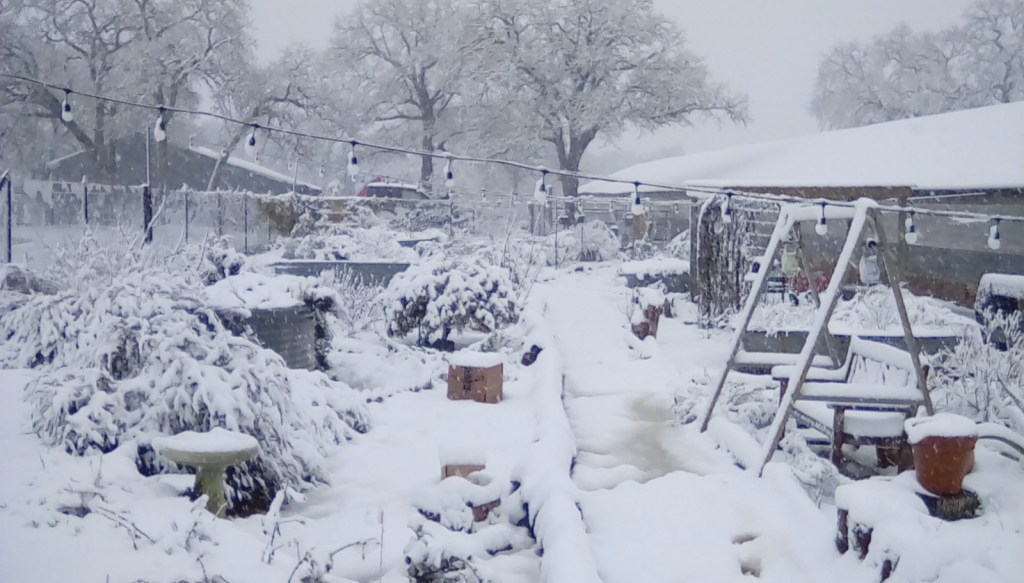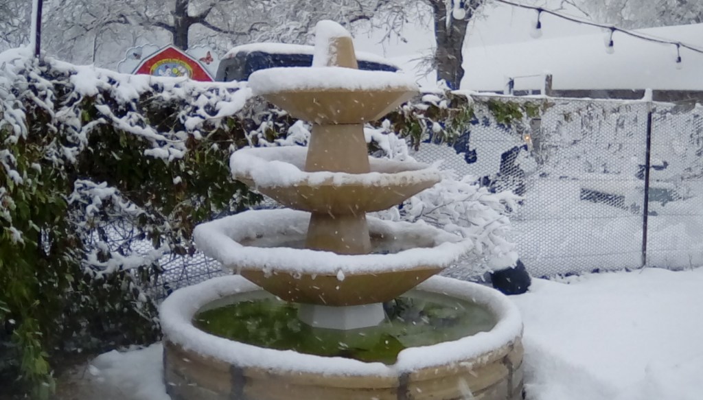 Gary drove me to the Milam Wildscape in the storm through back roads, which were safe. In addition to the snow, the Wildscape had also just recently received 9 inches of rain, but it held!!