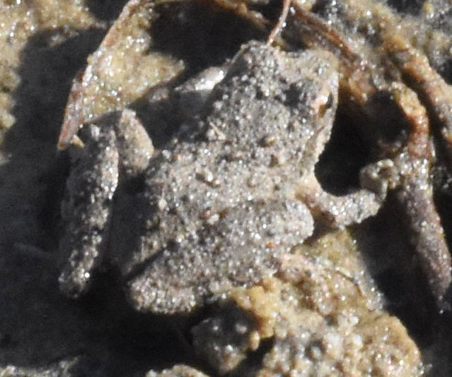 Whoops! After carefully looking at the supposed Paratettix hiding in the mud, I believe it is actually a frog, Acris blanchardi, so my underwater photo of Paratettix hasn’t happened yet. You’d think it hard not to be able to tell a grasshopper from a frog, but there you go. I’ve deleted the observation and resubmitted under Acris.