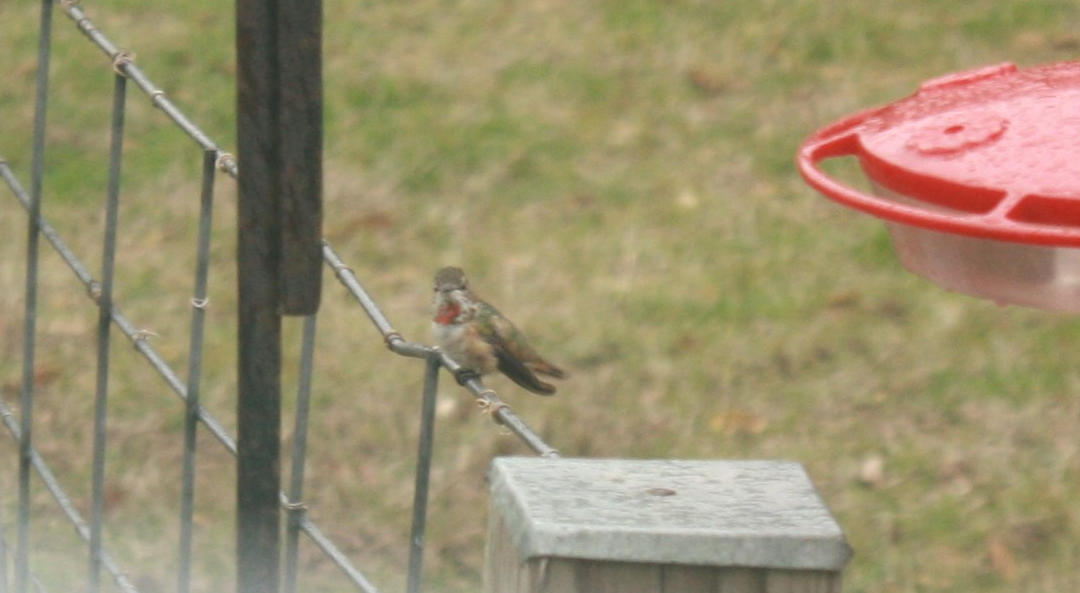 So, to get to the real news…I have about four to five hummers that have been here for months. I finally got a shot at one, and I think it’s a Rufous hummingbird.