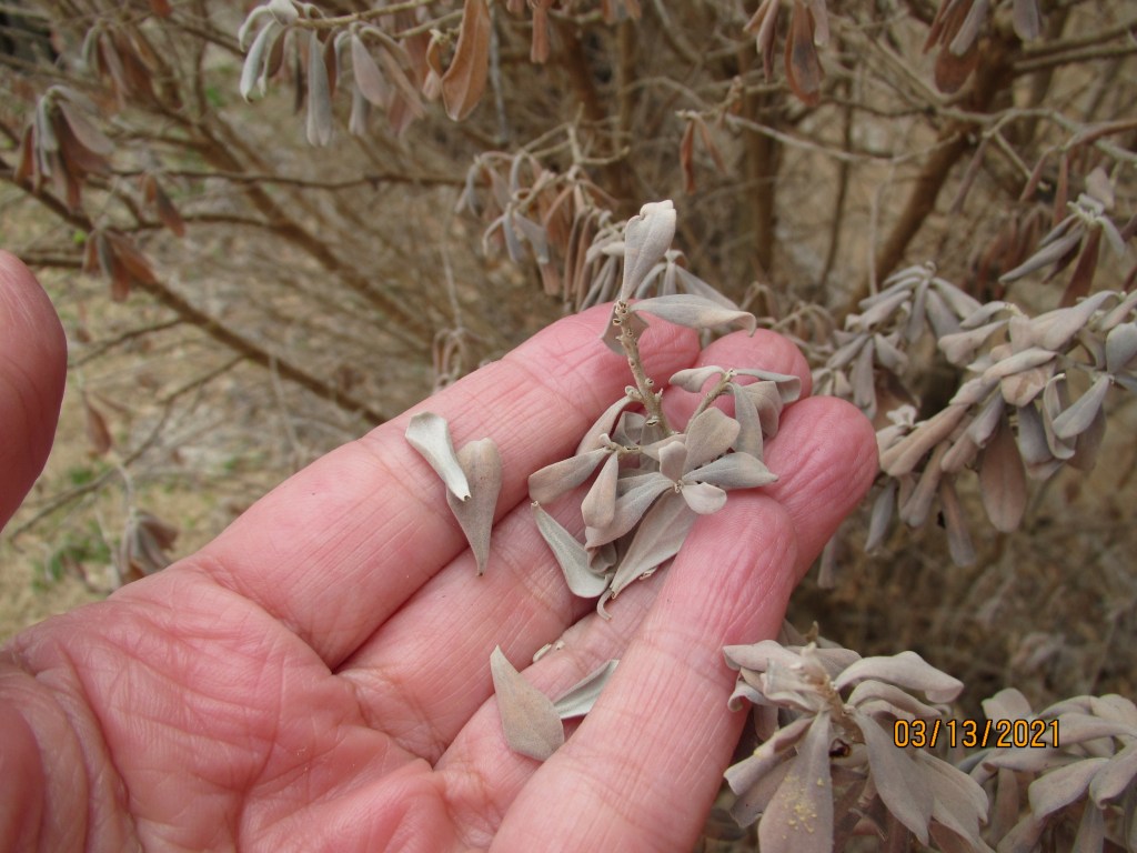 The Texas Sage shedding copious amounts of dead leaves.
