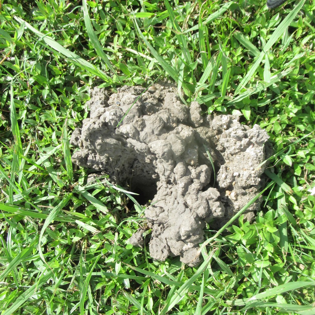 Among the animals observed was a fox squirrel (Sciurus niger) checking out the future pecan crop and several crayfish mounds (Cambaridae family). While Connie was trying to point out some rice stink bugs (Oebalus pugnax) she had spotted, my eyes focused instead on a tiny sharpshooter (Draeculacephala sp.) on a blade of grass.