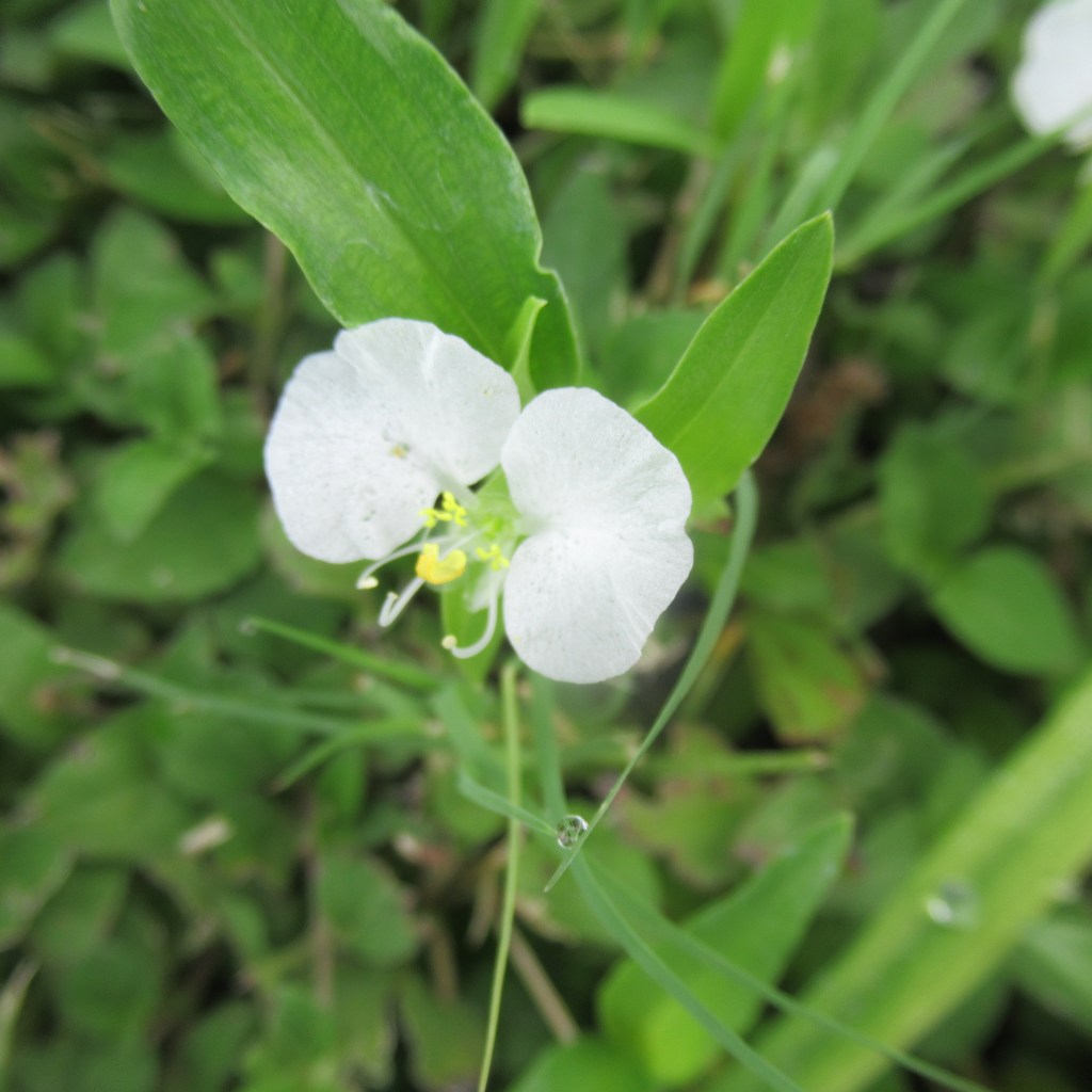 Strolling around the park “at the speed of botany,” we did some “belly botany.” Most of the plants in bloom were below the height of the mower blades. One remarkable observation was the abundance of white widow’s tears (Commelina erecta). I observed only one blue dayflower during the visit. We were pleased to see straggler daisy (Calyptocarpus vialis) and turkey trot frogfruit (Phyla nodiflora) carpeting the park. Wing pod purslane (Portulaca umbraticola) was in bloom and the tiny delicate flowers of erect spiderling (Boerhavia erecta) required a closer look.