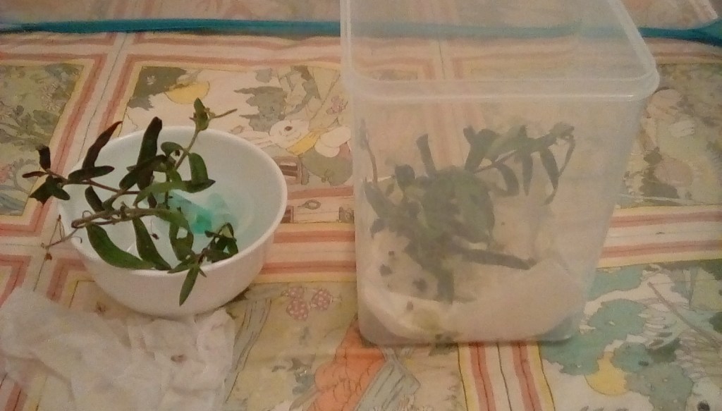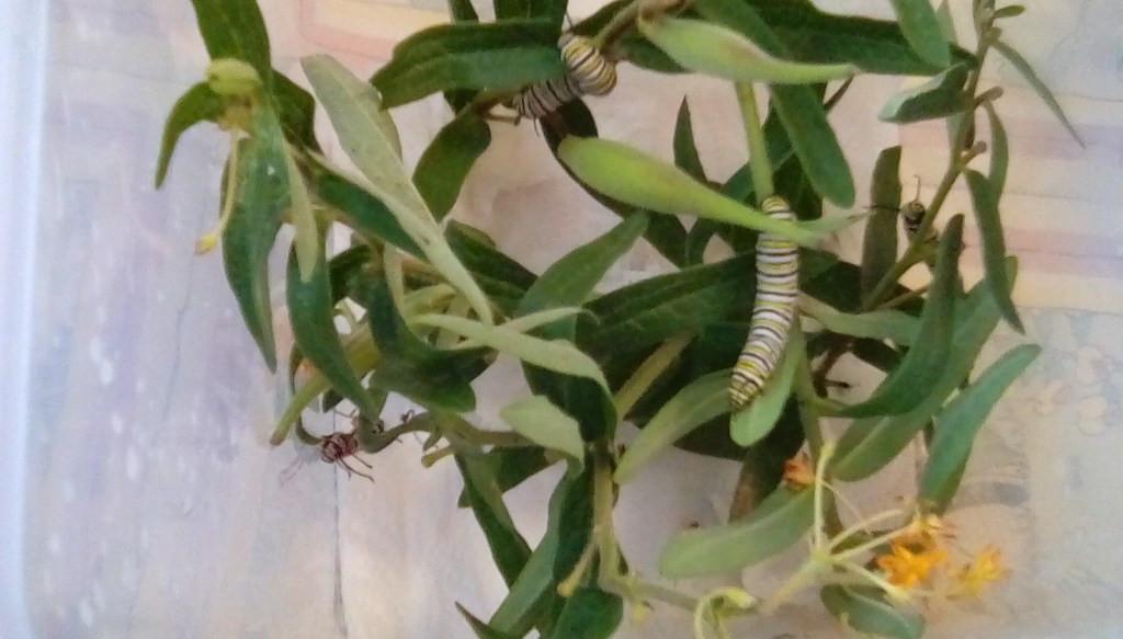 So many creatures can kill them, and the fowl were roving (it is, after all, a chicken farm). I decided to take them home and raise them in my house. I have done much research on this topic and also took home milkweed stems.