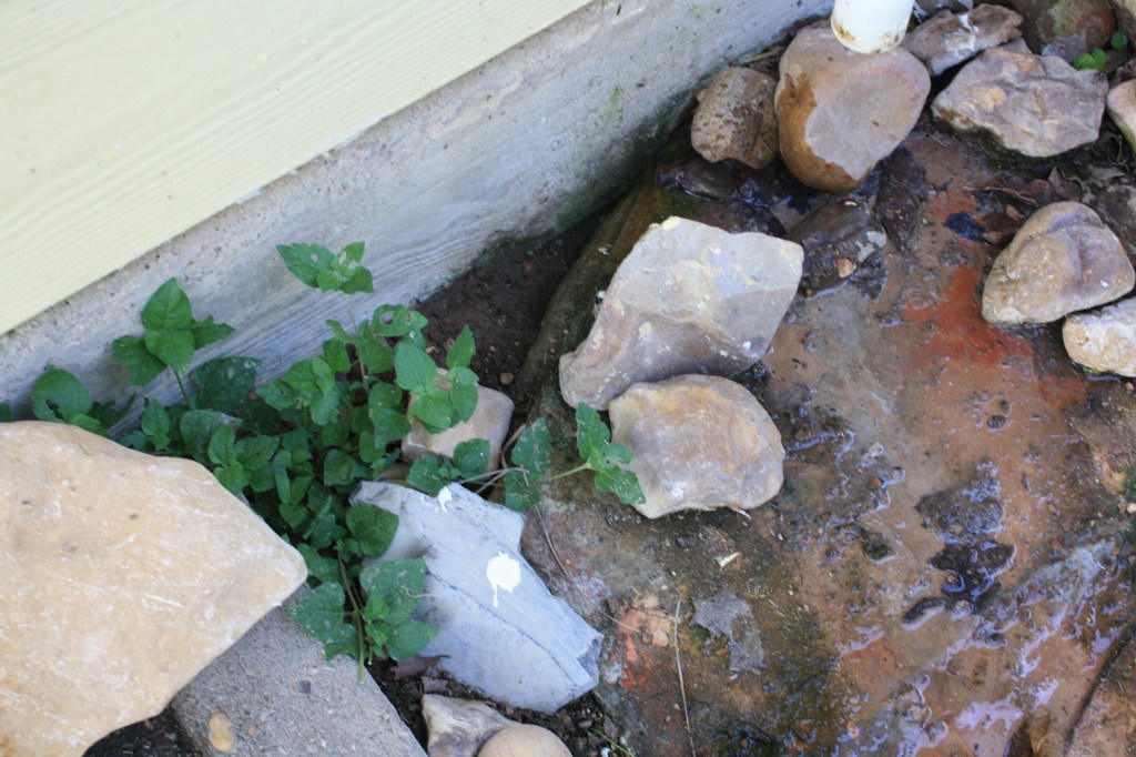 Early in the morning on Saturday, August 14, I was looking for my friend the Gulf Coast Toad that I say hi to on most mornings. She is a big girl that lives under the faucet where I had put a flat rock for her to hollow out her house. It is always damp so she likes it there.