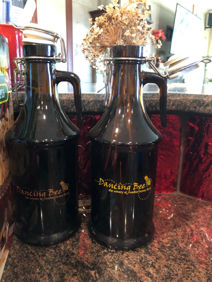 These are the containers they put mead in when they sell it. You bring them back to get more, so it’s a great re-use example.