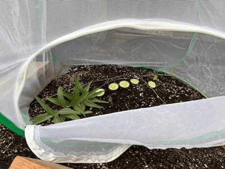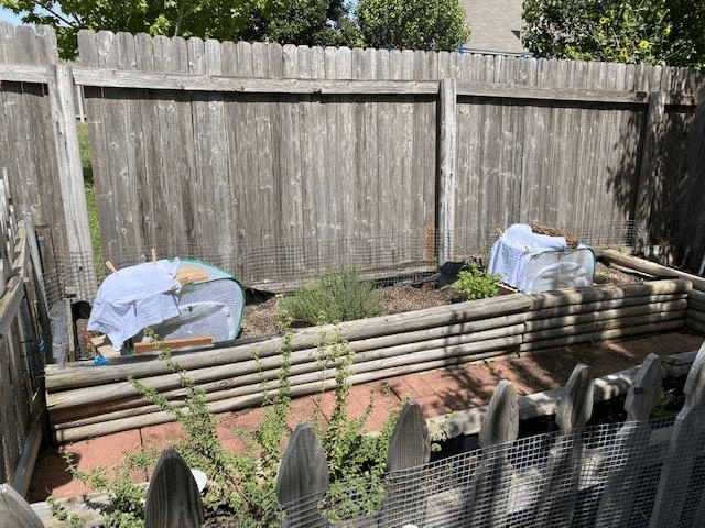 After seeing white wing doves among other birds hanging around my garden, I covered it with an enclosure I already had from when I was protecting some black swallowtail caterpillars on my dill last year.