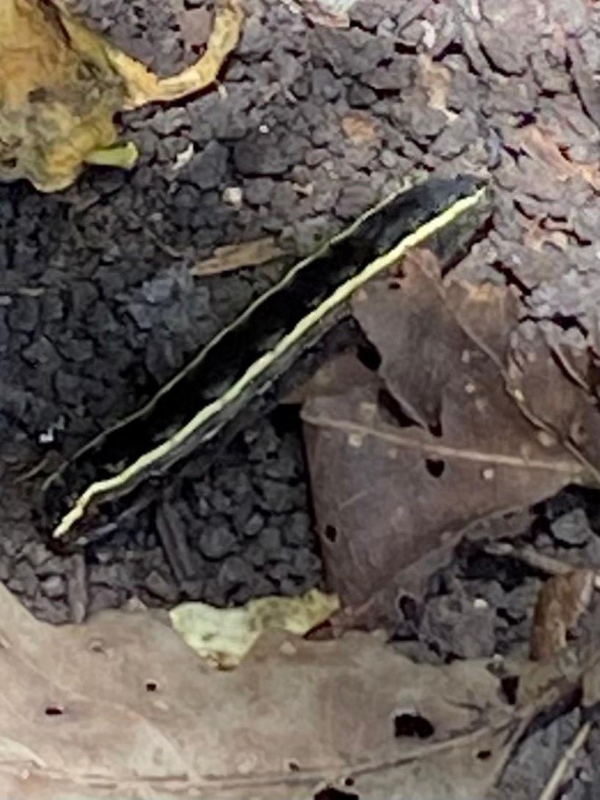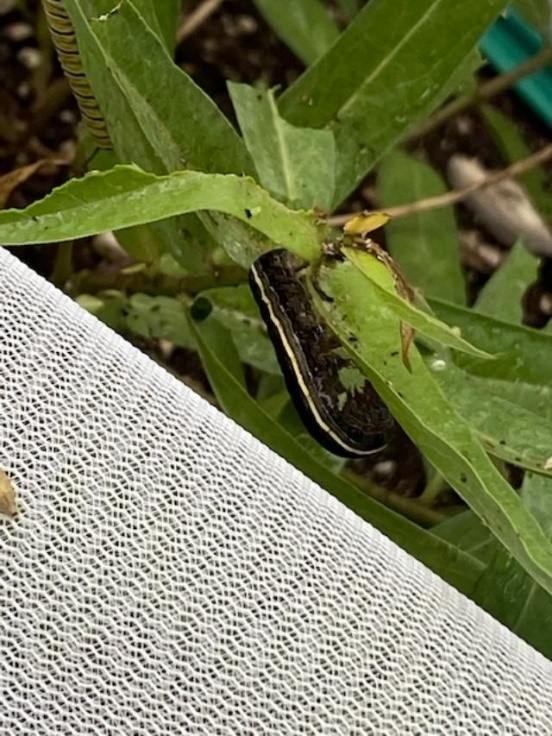 July 23, 2021 – Armyworm eating the caterpillars’ milkweed. I relocated it before it was ID’d.
