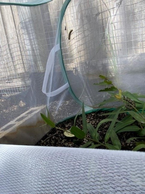 July 22, 2021 – Found more caterpillars for a total of six. Two on the other side and four in the first enclosure where I spotted the first one.