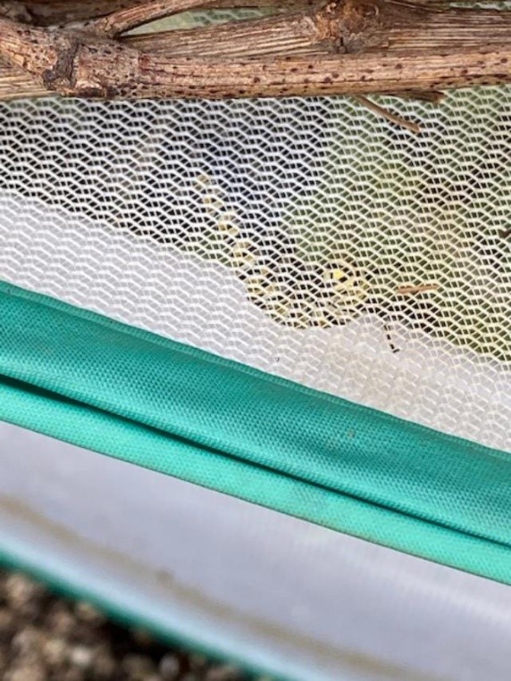 July 24, 2021 – Cathy suggested providing some shade so I cut out old cotton t-shirts and used clothes pins to attach to enclosures.