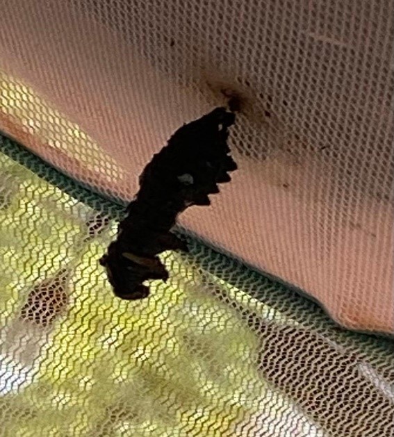 As I take a closer look, I notice a trail of ants that ended on the caterpillar. I’m frantically trying to figure out how to get rid of them without harming the caterpillar which is beginning to transform. I did not see one ant this whole time until now. I laid out ant bait traps in their path and notice they are all over the caterpillar. Cathy suggested gently drizzling water over the caterpillar to try and get them off, which I did, but in a manner of minutes the poor thing was devoured, resembling a dry shell and ultimately did not survive. I was heartbroken and devastated.