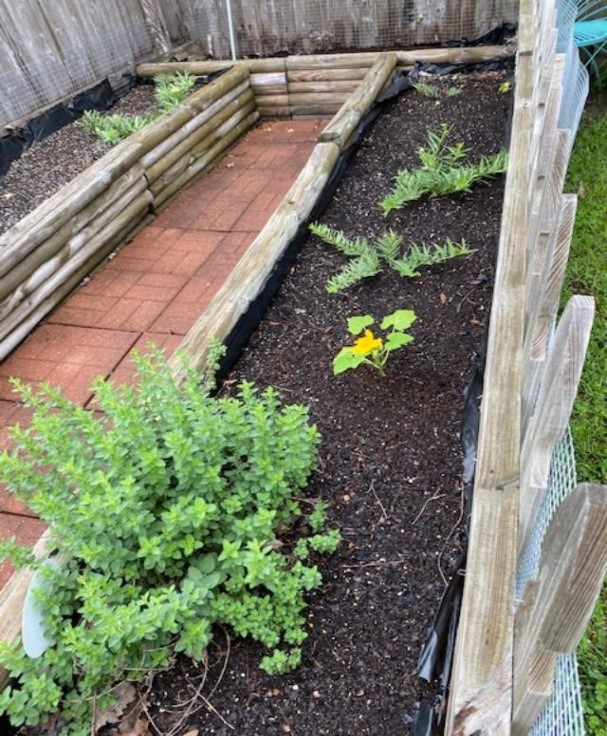 Even my two flame acanthus bushes are coming back which the hummingbirds love. Don’t worry, I pulled all those invasives in the back of the garden out. Especially that tall monster in the center.