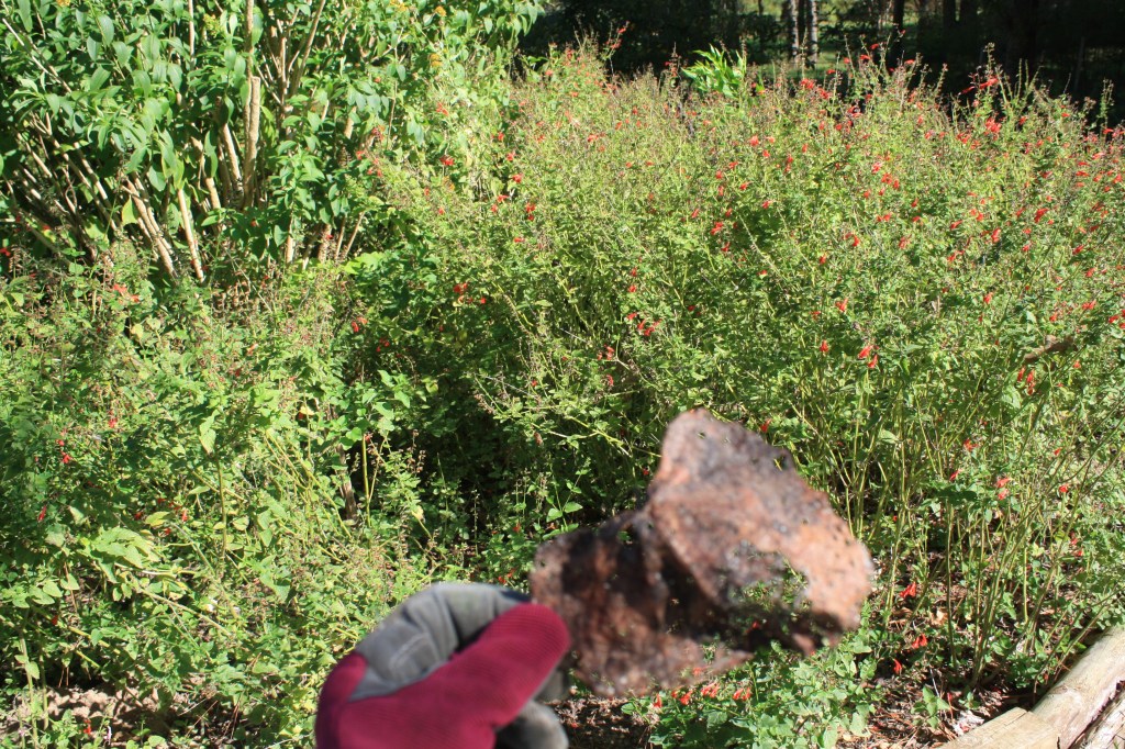 After I left the garden, I went over to the Celeste fig tree that has frozen back every winter, and has just put out the first edible figs ever! I was so happy. A little snack for me.
