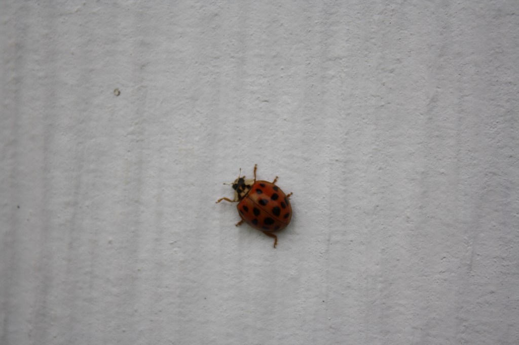 I am sure all of you are having fun with them also. They are actually Asian beetles that originated in China, Japan , Korea, and Russia. They come in many colors and have different numbers of dots on them.