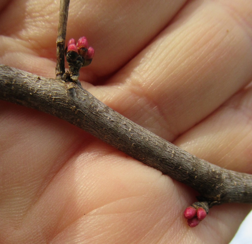 Tuesday, I observed the swelling flower buds of the volunteer Eastern Redbud trees (Cercis canadensis) near my house.