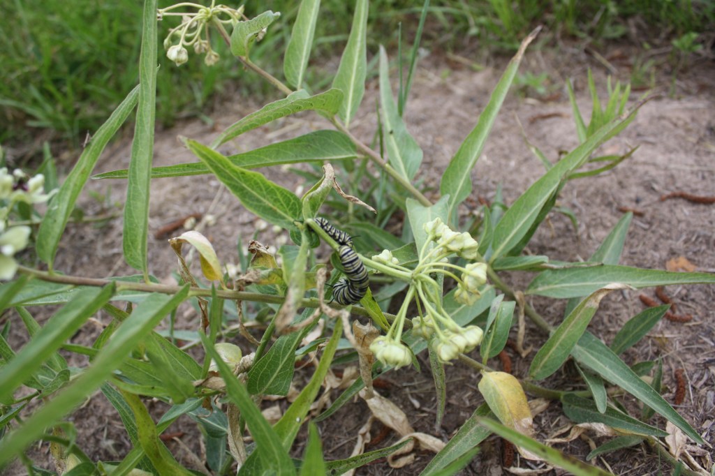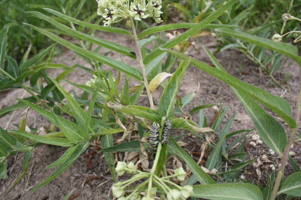 On Maya 4, I was so happy to discover two monarch caterpillars feeding on the milkweed a group of our Master Naturalists planted on our properties last year. This species of milkweed is Asclepias asperula, common name Antelope Horns or Spider Milkweed.