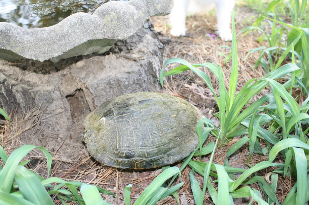 He barked and barked, getting my attention really fast. I was sure it must be a snake, but it was a female Red-Eared Slider (Trachemys scripta elegans) a long name for a turtle…who comes up with these names?
