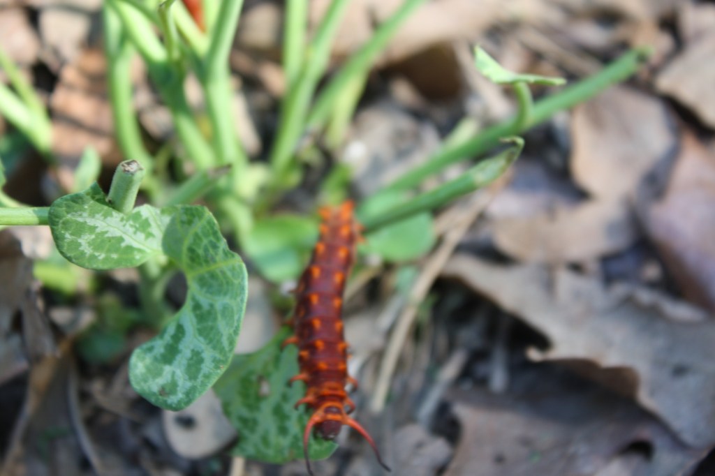 So, for a while I have been talking about the really neat caterpillars of the Pipevine butterfly. Their host plant is the Pipevine plant. I have a naturalized Pipevine in my garden called Aristolochia fimbriata that originally came from Brazil. There are native ones in our area, which are very hard to see and find.