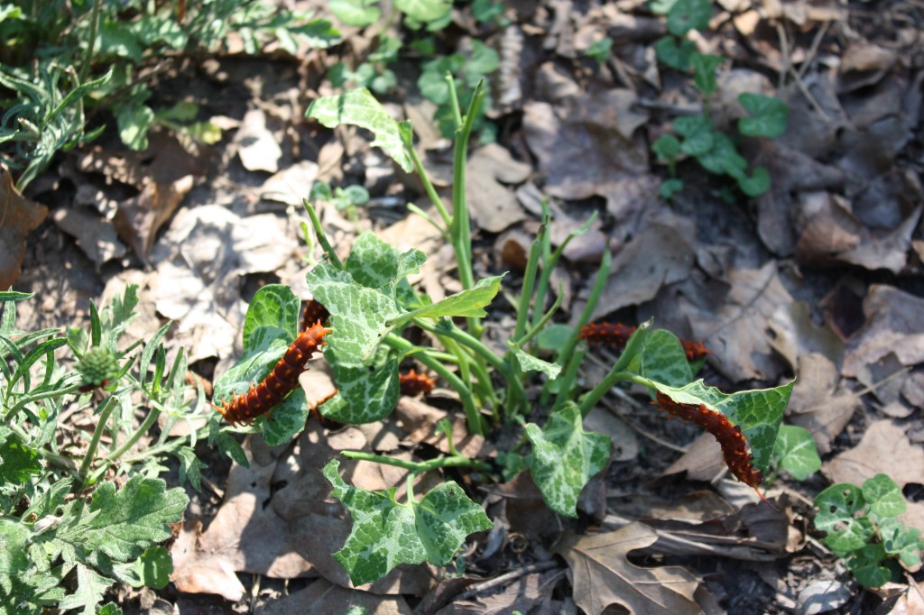 So let me throw a wrench on this theory. Right now, today May 20th, 2022, it is really hot in my garden. It is hot everywhere in Central Texas. And I have a grouping of both the red caterpillars and the black ones.