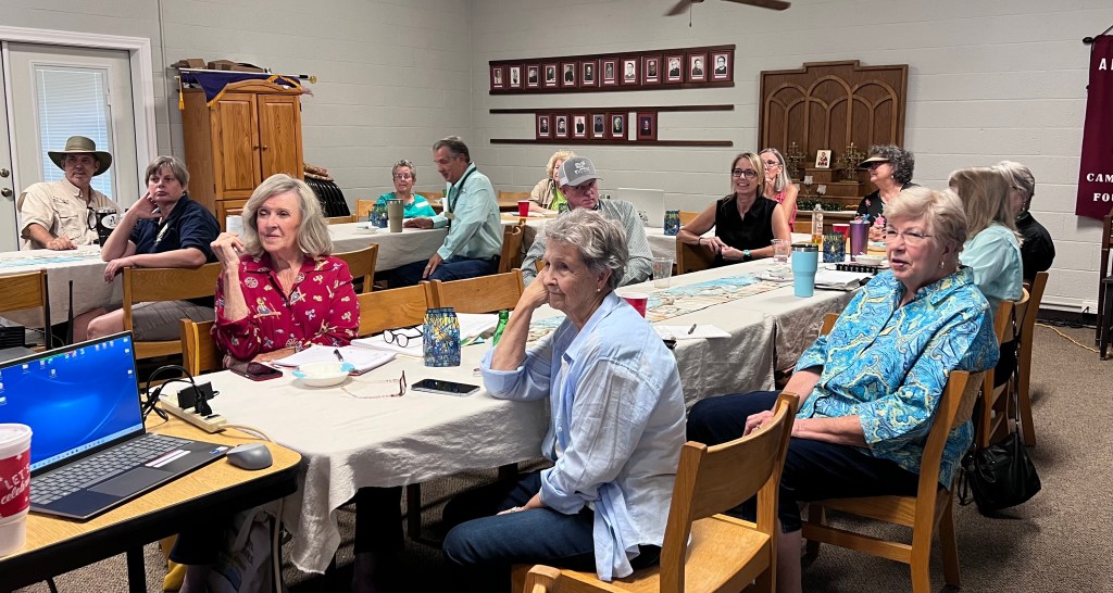 We had visitors at our meeting, too. You are welcome to come any time you’re in Cameron on the second Thursday of the month. We’re at the Episcopal Church meeting room with potluck starting at 5:30 and the speaker at 6. Come join us!