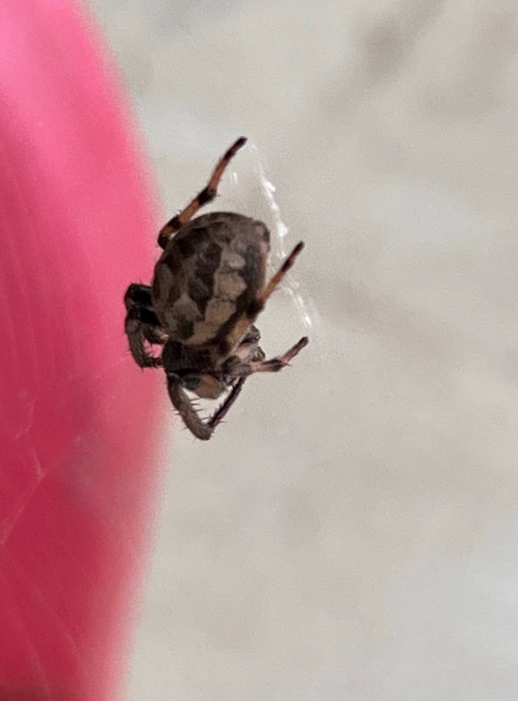 I figured most of the webs I saw were woven by an orbweaver, judging from their shape. I know that the yellow garden spiders (Argiope aurantia) are mostly gone, so I ruled them out. But I’ve seen a couple of different orbweavers around this fall and I’m not sure which ones they are, because I haven’t gotten any confirmation from iNaturalist reviewers (follow the link to view and confirm or deny my guesses!). Most appear to have been Western spotted orbweavers (Neoscona oaxacensis) or tuft-legged orbweavers (Mangora placida).