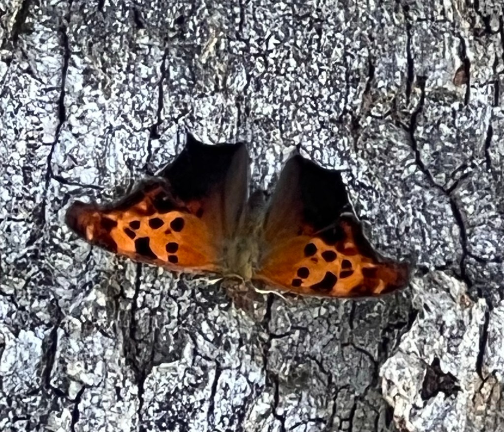 I also saw lots of uncooperative tiger swallowtails and black swallowtails, along with buzzy little fiery skippers, tiny dainty sulphurs, and two gorgeous question marks. They were too busy to photograph. It’s a great time of year for butterflies.