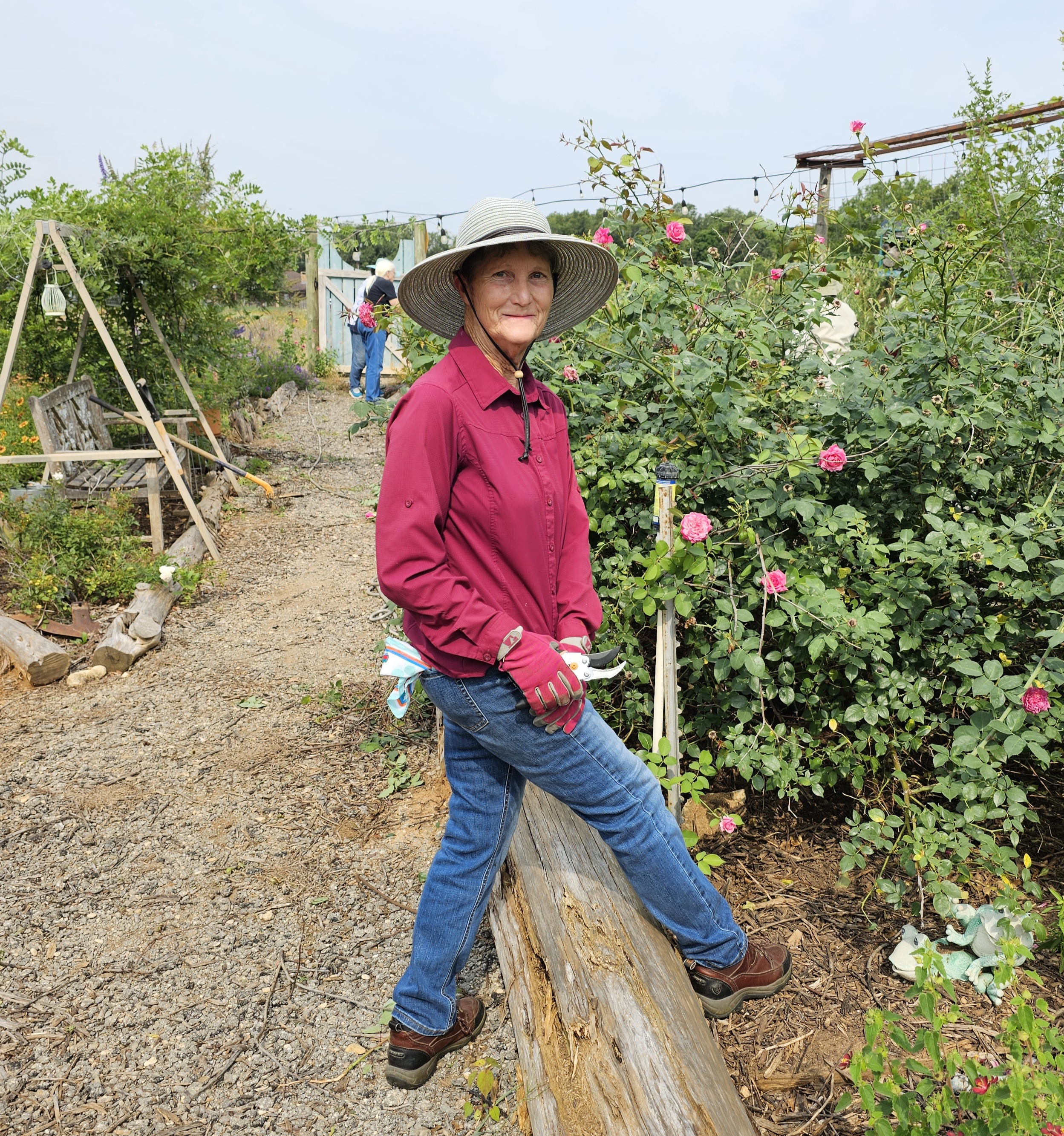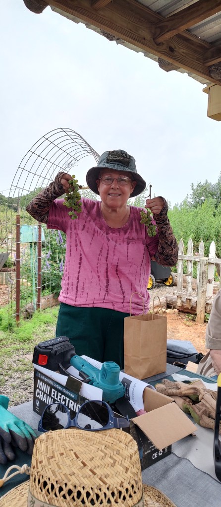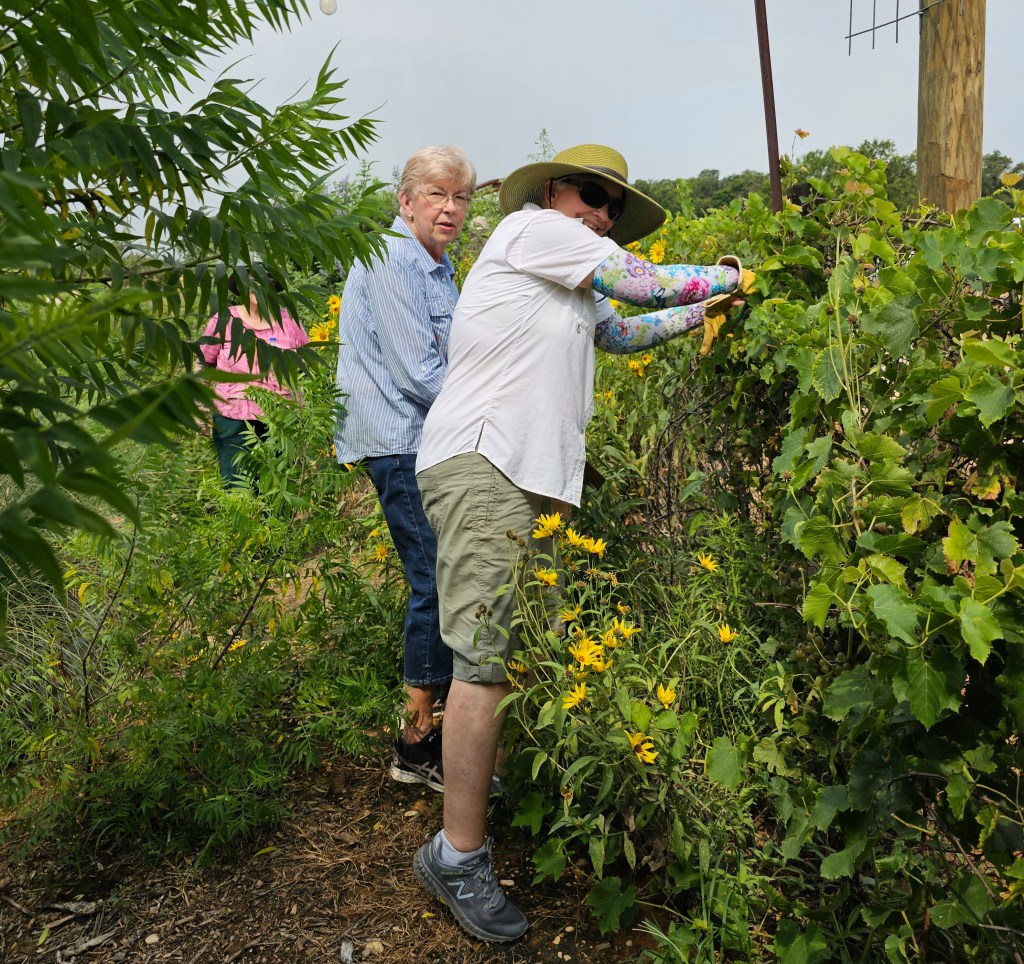 Donna at workConnie taking care of plantsScott ready to get stuff doneCatherine has a lot of grapes, as Sandra looks onLinda Jo (not taking photos for iNat) and PamelaCarolyn and her haulConnie watches Phyllis pruneNeil hydratingResting from the heat