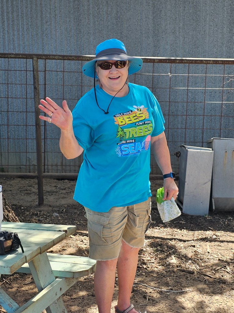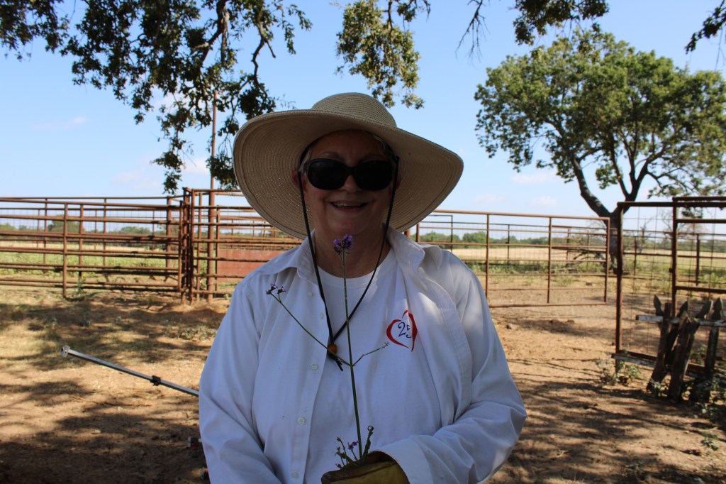 Sweltering heat couldn’t stop the nine Texas Master Naturalist El Camino Real chapter members from sprucing up the El Camino Real Wildscape at the Bird and Bee Farm and finding a few “treasures” in the process on Saturday, July 15.