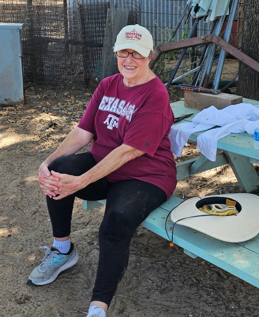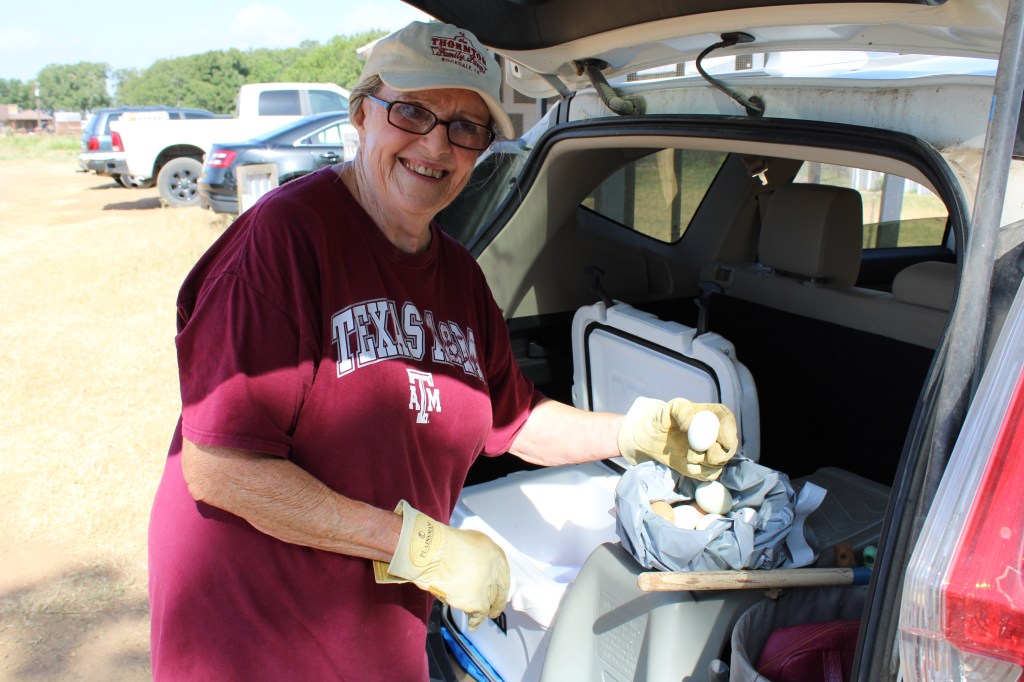 A lot of work was done to clean up the area where meetings are held at the site when large groups come for events. It was hot, but the area is shaded by trees and a nice breeze helped. In the midst of the cleanup, Jackie Thornton found a nice nest of chicken eggs. She took them home (and we didn’t get photos).