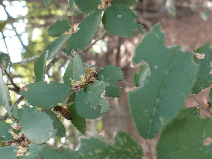 Today when I was in the woods the trees were buzzing. It’s not unusual to find bees busy in trees in late summer or fall when they might find galls on oak trees or dewy sap on pecan leaves. I was curious as to what was causing all this activity. I was not surprised to find them on the elm trees, but the reason they were there did surprise me. The elms are in bloom! Some of the trees are in full bloom while others are fading.