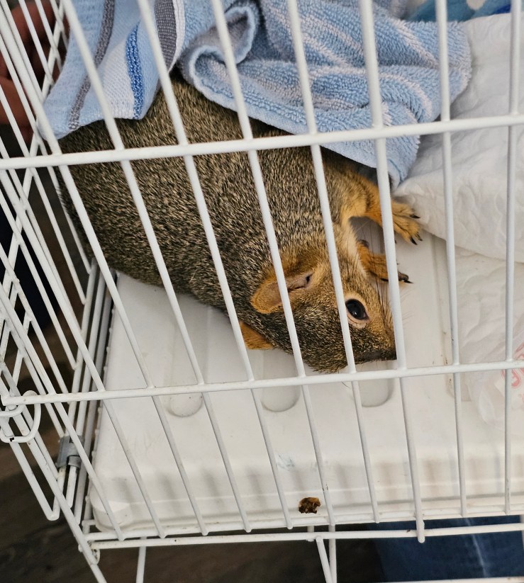 If you find a ” Pinky” baby, put it in a warm box with a rice filled sock warmed in the microwave. A mom will not claim a cold baby and baby squirrels do not have body heat. Keep predators away! If after four hours the mother has not claimed it, bring it indoors. Never leave it in the dark. Hydrate the baby with a few drops of water or Pedialyte, very slowly with a dropper. Do not let the baby get too hot on a heating pad. Raising squirrels requires detailed instructions and about 3-4 months until they can be released.