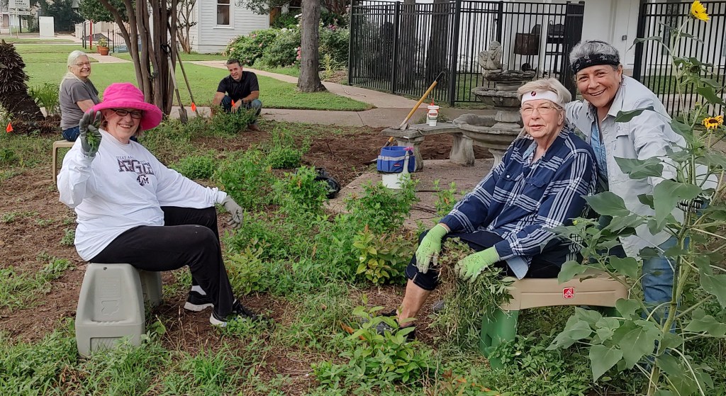 Progress is being made on the flower bed the chapter voted to develop into a native Texas plot. If faces Travis Street, so those of us who are in downtown Cameron regularly have paid attention to the ongoing battle with the non-planted plants running rampant in it.