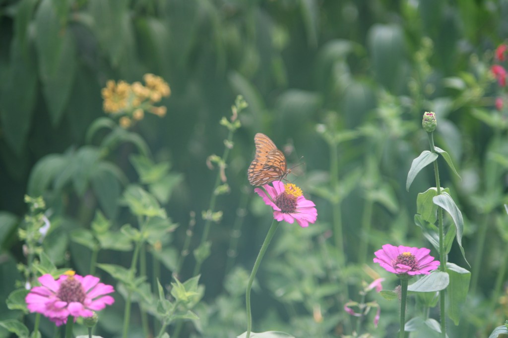 I have a lot of Purple Coneflowers and Zinnias in the garden, which are favorites of this species.