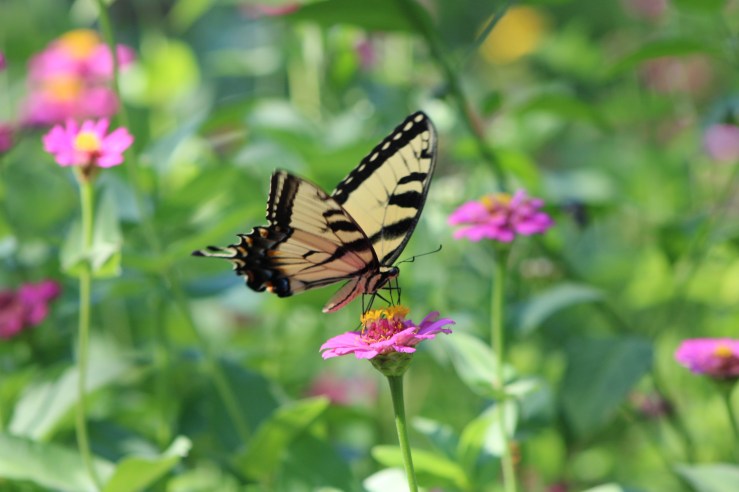 Sometimes the reaction is, “but they were eating up the leaves.” I then ask if it was a miniscule number of leaves or is it completely devoured. If it’s miniscule and it is a mature plant or vegetable or fruit tree, I say let it be since it won’t be long until it turns into a beautiful butterfly and that mature plant will quickly recover. If it is an immature, young, plant or vegetable, I suggest protecting it with crop covers until it matures and can handle the occasional munching from those caterpillars.