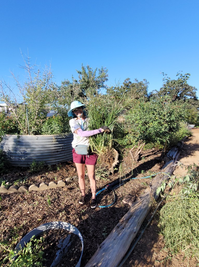 While at the sanctuary, we saw bees, hummingbirds, and chickadees. Cindy found a new water fountain, as well, and more drip lines have been installed.