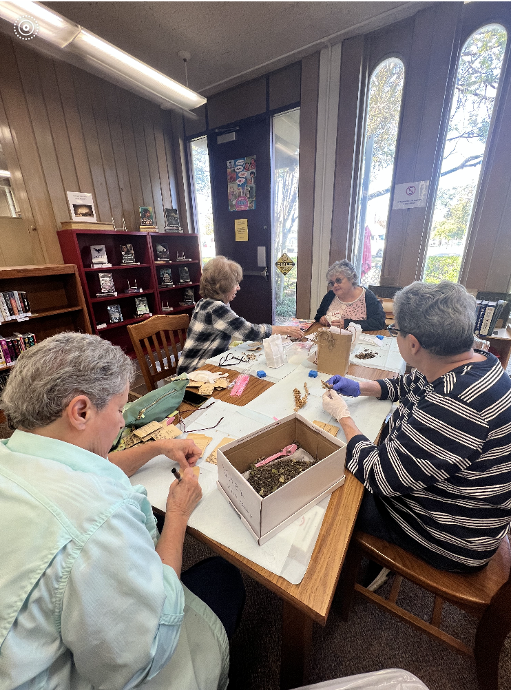Yesterday, November 26th, we met at the Cameron Public Library to start packaging the seeds. Our project has been embraced by Elena Berkes, the library’s Director. She even joined us yesterday!