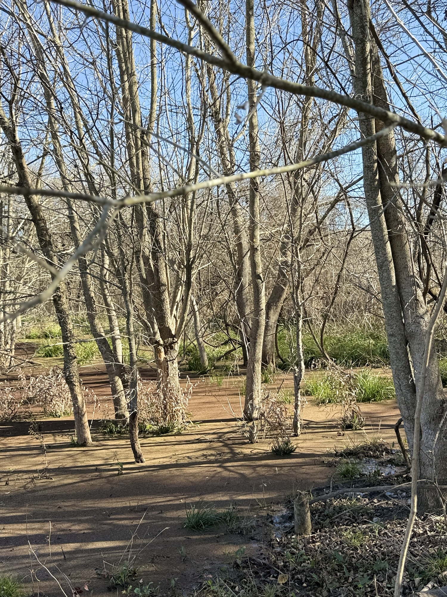 We then explored a ravine that lead to the big creek and observed how the creek is slowly moving northward. I did not fall down when I clambered down the embankment. I held onto trees.