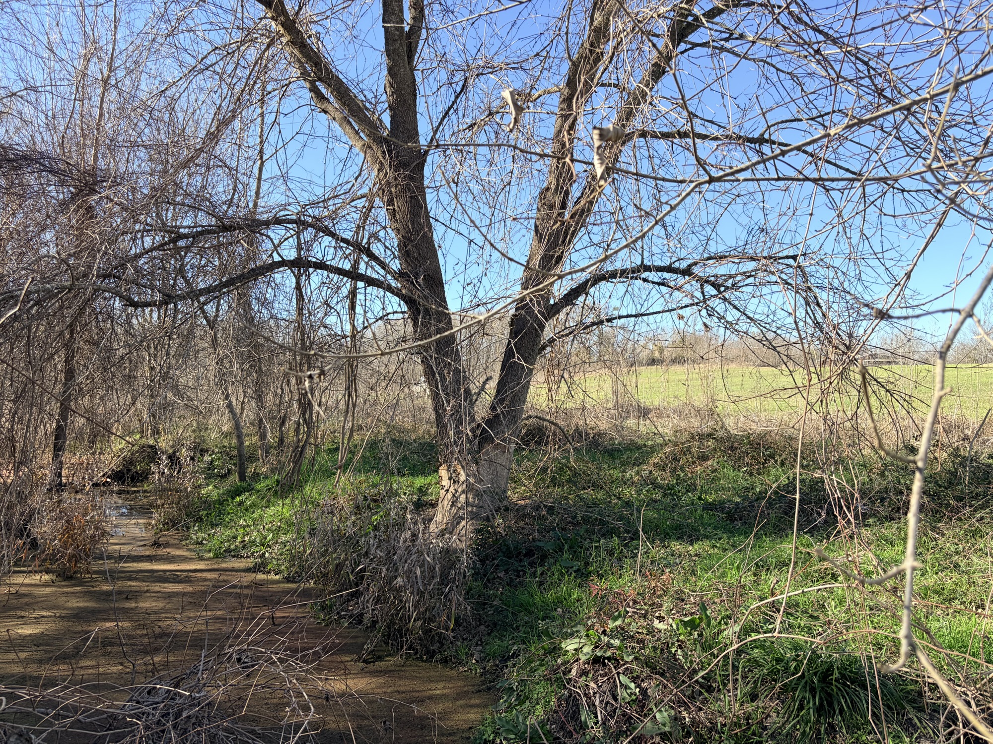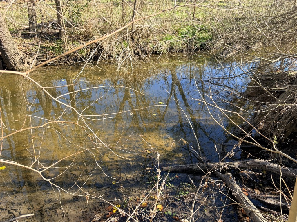 We got into the truck and took off for the spring-fed creek that runs from the property to Big Elm Creek. At first we looked in the wrong place and got attacked by much greenbrier and dewberry vines that tried very hard to trip us (I later determined that I got a tick on my head – darn nature). I did determine that the water was not out of its banks and was very clean.