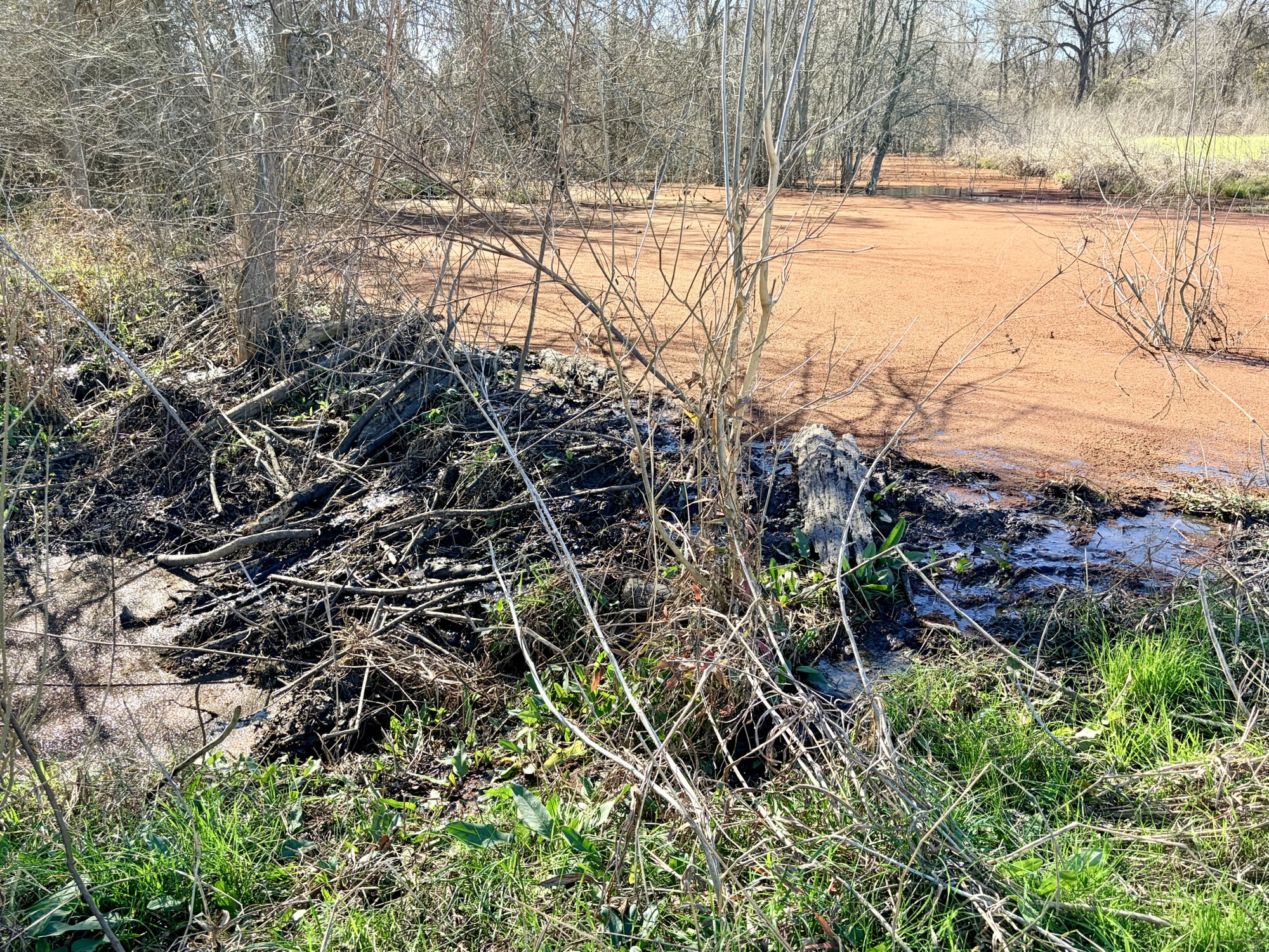 It turns out, the answer is yes, though I am sure many of you already know that. I went on a great adventure on Friday with my fellow Master Naturalist to see for ourselves. We escaped to the wilderness known as her property outside of Cameron and searched for a rumored beaver dam on the spring-fed creek that runs through the land. It was a beautiful warm day for exploring. (Note that I am not providing the exact location to maintain the beavers’ and property owner’s privacy.)
