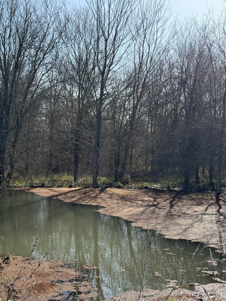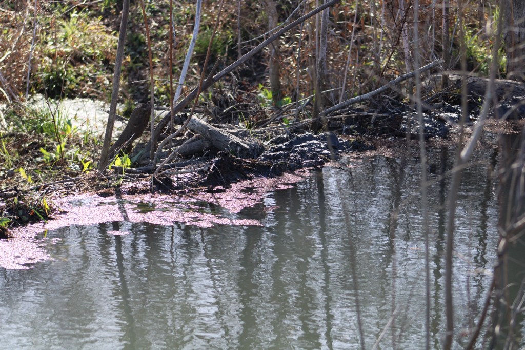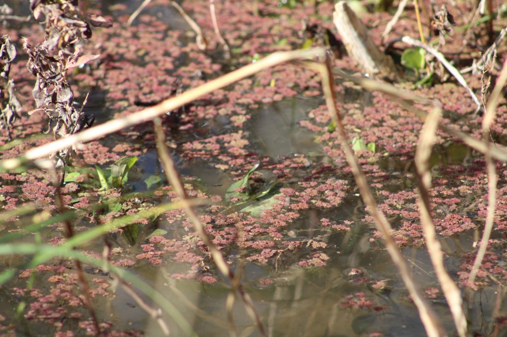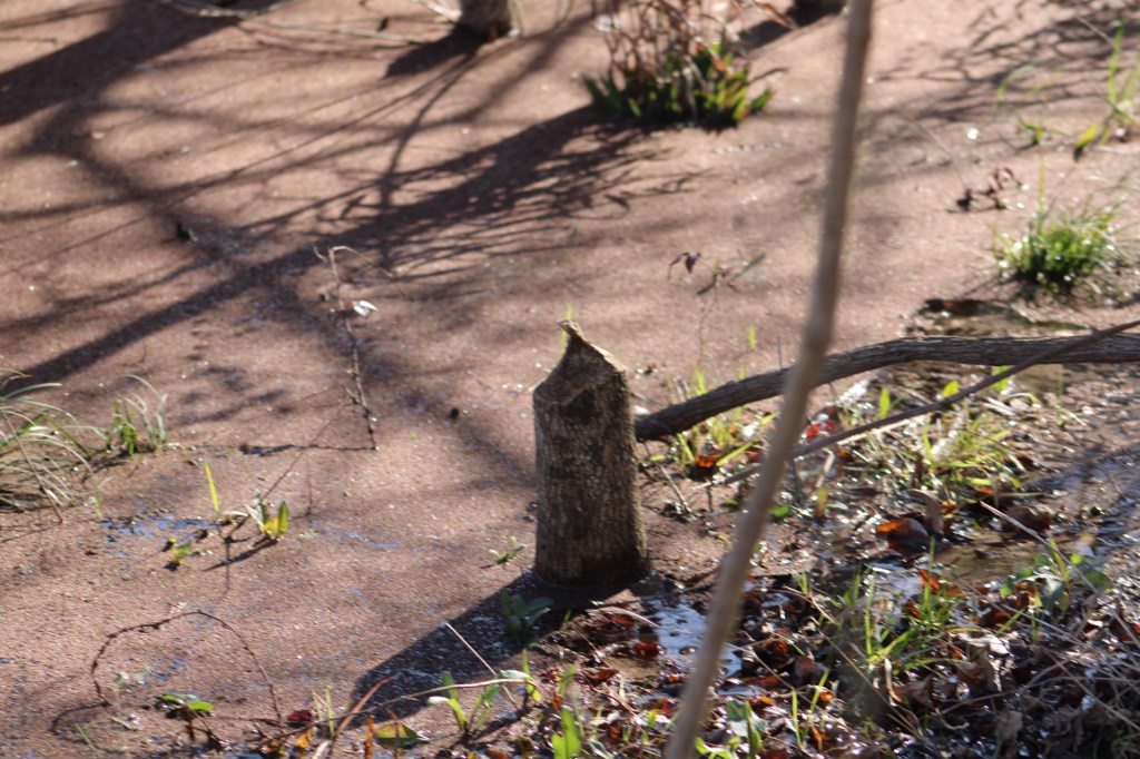 We could see how the creek trickles through each dam, which is another thing beaver dams do, they lessen erosion from fast-flowing water. and we saw many trees that had been chewed on. The pond water was so clear that you could see fish in it, where the duckweeed wasn’t floating.